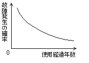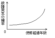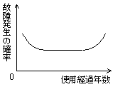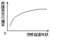 問15 ハードウェアの使用経過年数を横軸,そのハードウェアに故障が発生する確率を縦軸にとると,一般的にどのようなグラフになるか。
