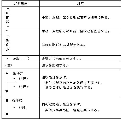 次のプログラムの説明,擬似言語の記述形式の説明及びプログラムを読んで,設問に答えよ。