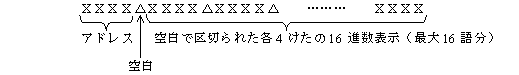 (2) 副プログラム HEXDUMP によって出力されるレコードは,次の形式である。