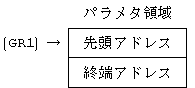 パラメタ領域に範囲の先頭アドレスと終端アドレスを格納し,パラメタ領域の先頭アドレスを GR1 に設定して呼び出すように HEXDUMP