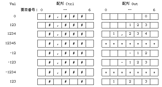 (3) 変数 Val の整数値が正しく変換できない場合は,配列 Out の全要素に“*”を格納する。