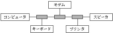 問5 図のような構成で,コンピュータと周辺機器の接続を可能とするインタフェースはどれか。ここで, はハブを表す。