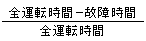 全運転時間が100時間のとき,稼働率を0.9995以上にするには,故障時間を最大何分以内にする必要があるか。