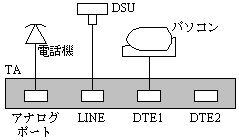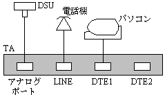 問20 TAを使用したISDN接続の形態として,適切なものはどれか。ここで,パソコンにはモデムが内蔵されているものとする。