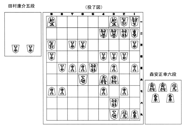 | 今日の対局は、ベテランの森安正幸六段と新鋭の田村康介五段の1局です。 先手の三間飛車に後手の居飛車穴熊という、流行の戦型の一つです。 先手から飛車交換を挑んだのは少々驚きましたが、やはり少し無理気味だったようです。 初心者の方には、穴熊の堅さをよく見ていただきたい。穴熊がいかに守りに堅いかがよく分かります。 最後には、飛車を切ってきたのをかまわず先手玉を詰ませています。 投了図以下は、3七玉の一手に4八馬入として詰みです。 田村五段は早指しで有名ですが、なんと早指し戦以外ではほとんど秒を読まれたことがないくらいです。 田村五段は、実は富山県出身で私と同郷なんですな。 |
