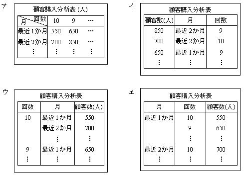 Ìä34 ¡¡A ¼Ò¤Ç¤Ï¡¤Í¥ÎɸܵҤÎÁؤˤĤ¤¤ÆÄ´ºº¤¹¤ë¤³¤È¤Ë¤Ê¤Ã¤¿¡£Í¥ÎɸܵҤȤϡ¤ºÇ¶á¹ØÆþ¼ÂÀÓ¤¬¤¢¤ê¡¤¤«¤Ä¹ØÆþ²ó¿ô¤Î¿¤¤¿Í¤È¤¹¤ë¡£Í¥ÎɸܵҤιʤê¹þ¤ß¤ò¹Ô¤¦¤¿¤á¤Ë¡¤ºÇ¶á¤Î£±¤«·î¡¤£²¤«·î¡¤£³¤«·î¡¤¡Ä ¤Ë¤Ä¤¤¤Æ¡¤´ü´Ö¤´¤È¤Ë¹ØÆþ²ó¿ô¤´¤È¤Î¸ÜµÒ¿ô¤ò¿ô¤¨¡¤¸ÜµÒ¹ØÆþʬÀÏɽ¤òºîÀ®¤¹¤ë¤³¤È¤Ë¤·¤¿¡£Í¥ÎɸܵҤÎÁØÊ̸ܵҿô¤òµá¤á¤ë¤Î¤ËŬÀÚ¤Ê¸ÜµÒ¹ØÆþʬÀÏɽ¤Ï¤É¤ì¤«¡£
